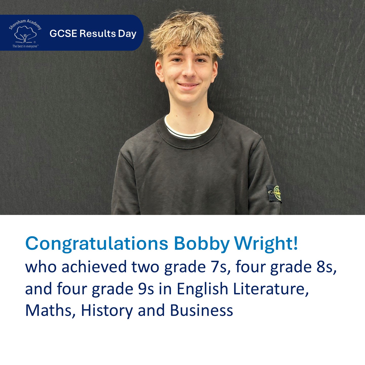 - Bobby Wright, who achieved four grade 9s in English Literature, Maths, History and Business, as well as four grade 8s and two grade 7s. Bobby said: