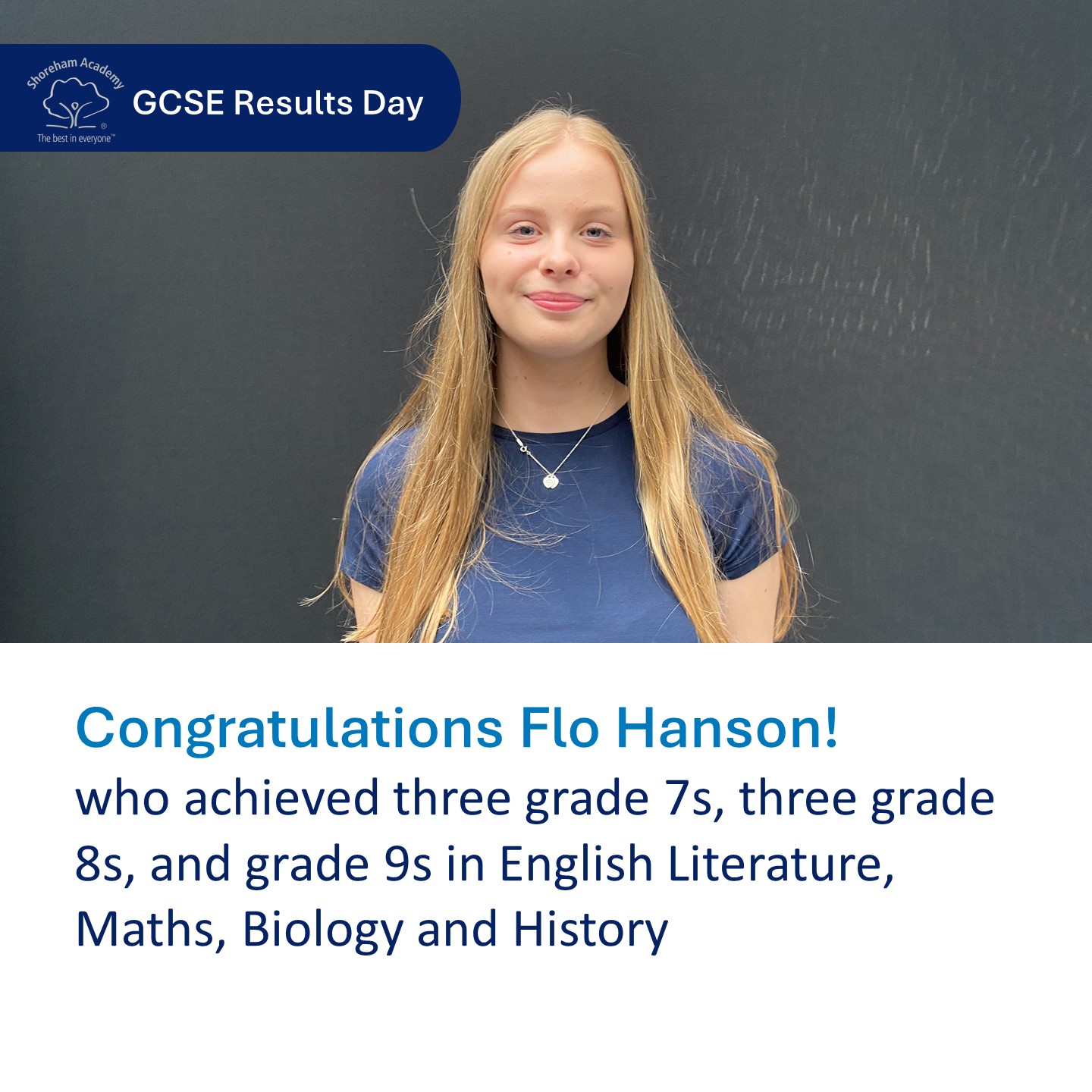 - Flo Hanson, who achieved four grade 9s in English Literature, Maths, Biology and History, as well as three grade 8s and three grade 7s. Flo shared her advice to future GCSE students for achieving well: