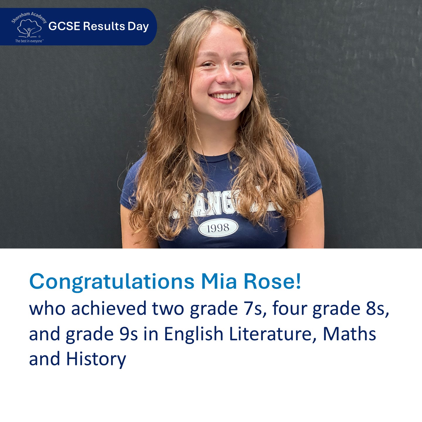 - Mia Rose, who achieved three grade 9s in English Literature, Maths and History, as well as four grade 8s and two grade 7s. On her advice for achieving well at GCSE, Mia said: