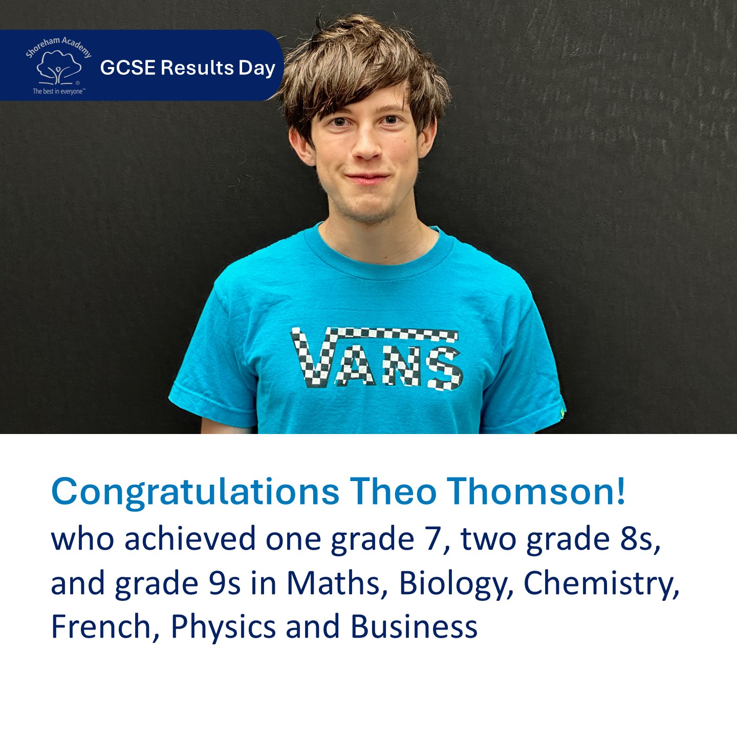 - Theo Thomson, who achieved six grade 9s in Maths, Biology, Chemistry, Physics, French and Business, as well as two grade 8s and a grade 7. Theo said: