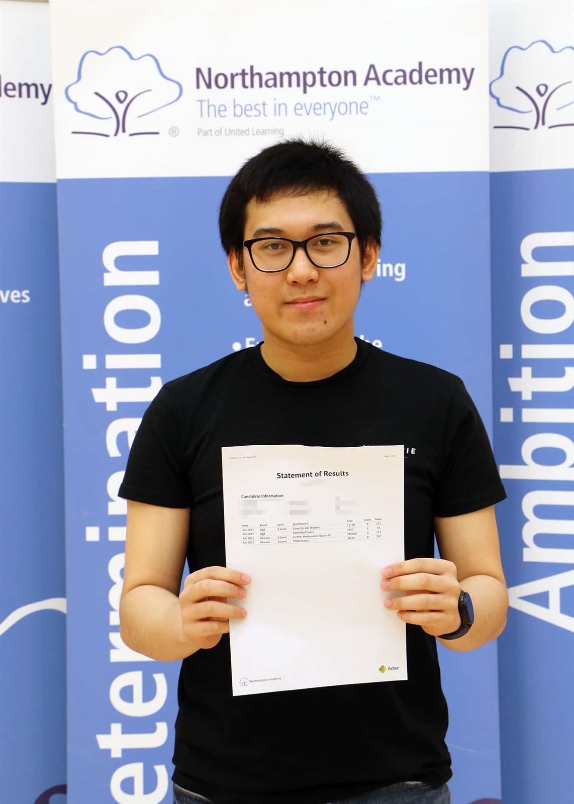 - Jonathan Lu, who achieved one A* in Maths, one A in Further Maths and one B in Computer Science, and will be attending the University of Warwick to study Computer Science.